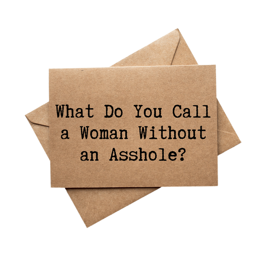 • card says What Do You Call A Woman Without An Asshole? Divorced... Congratulations